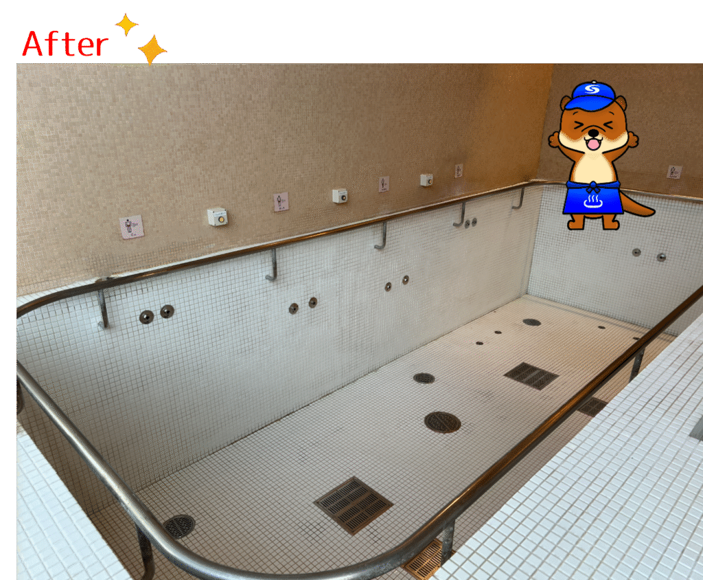 スポーツ施設の浴場は綺麗に保たれているところが多い一方で、汚れが蓄積している場合は「もう取れないもの」と諦めているケースも少なくありません。 同じような汚れでお困りの方がいらっしゃいましたら、ぜひ一度ご相談ください!